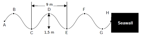 seawall in \(\text{5}\) \(\text{s}\). The distance between successive