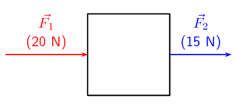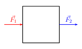 For example, imagine the following. You and a friend are trying to move a heavy box. You stand behind it and push forwards with a force \(\vec{{F}_{1}}\) and your friend stands in front and pulls it towards them with a force \(\vec{{F}_{2}}\). The two forces are in the same direction (i.e. forwards) and so the total force acting on the box is: