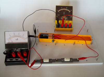 Set up the circuit according to circuit diagram 2), starting with only 1 resistor in the circuit.