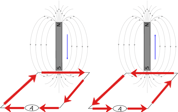 A circuit loop connected to a sensitive ammeter will register a current if it is set up as in this figure and the magnet is moved up and down:
