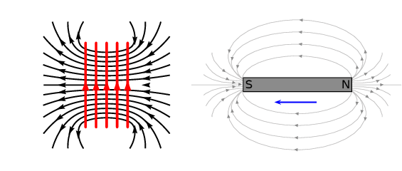 An easy way to create a magnetic field of changing intensity is to move a permanent magnet next to a wire or coil of wire. The magnetic field must increase or decrease in intensity perpendicular to the wire (so that the magnetic field lines “cut across” the conductor), or else no voltage will be induced.