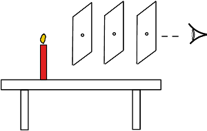 Now do the same with the third sheet so that you can still see the candle. The sheets of paper must not touch each other.