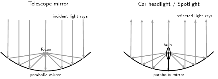 parabolic shape. Some examples of very useful parabolic reflectors are car