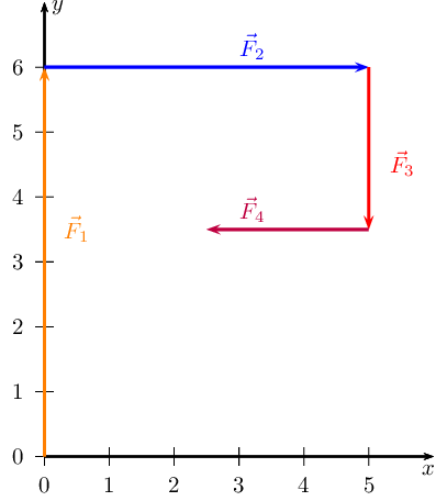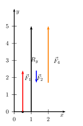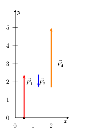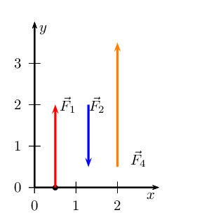 \(\vec{F}_{4} = \text{3}\text{ N}\) in the positive