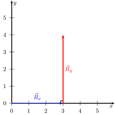 We note that the triangle formed by \(\vec{R}_{x}\), \(\vec{R}_{y}\)