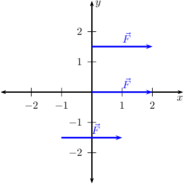 magnitude \(\text{2}\) \(\text{N}\) acting in the positive \(x\)-direction we can draw