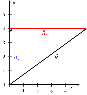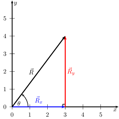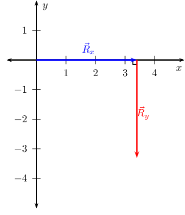 Now we use \(\vec{R}_{x}\) and \(\vec{R}_{y}\) to find the resultant.