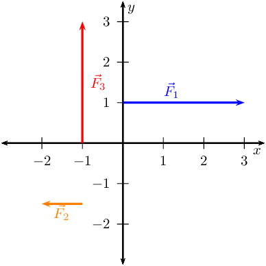 \(\vec{F}_{3} = \text{3}\text{ N}\) in the positive