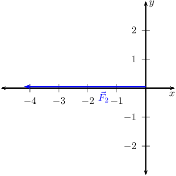 - \(\vec{F}_{2} = \text{3,2}\text{ N}\) in the negative