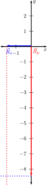 Now we draw the resultant vectors, \(\vec{R}_{y}\) and \(\vec{R}_{x}\)