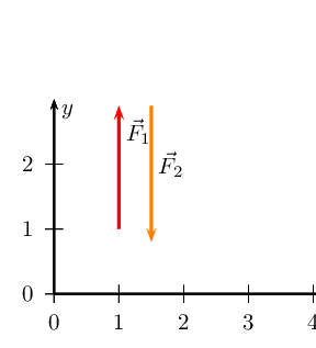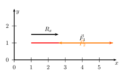 - \(\vec{F}_{2} = \text{1,5}\text{ N}\) in the positive