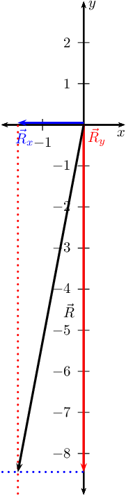Now we draw the resultant vector, \(\vec{R}_{y}\) and \(\vec{R}_{x}\)