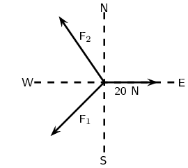 \(\text{N}\) due west. What are the components of force \(F_{2}\)?