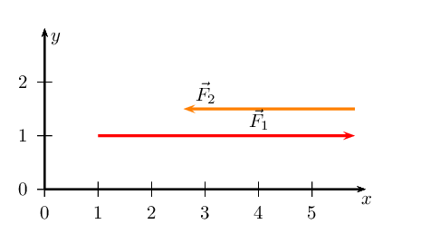 - \(\vec{F}_{1} = \text{1,5}\text{ N}\) in the positive