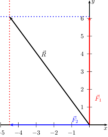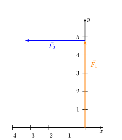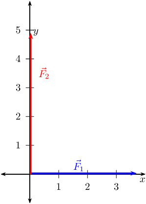 - \(\vec{F}_{1} = \text{4,3}\text{ N}\) in the positive