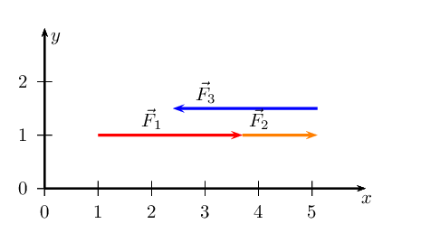 - \(\vec{F}_{3} = \text{1,9}\text{ N}\) in the positive