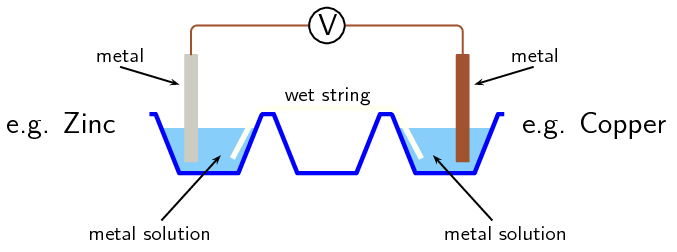 The voltmeter measures the potential difference between the charge on these electrodes. In this case, the voltmeter would read \(\text{+0,34}\) \(\text{V}\) as the \(\text{Cu}\) electrode has a relatively lower number of electrons.