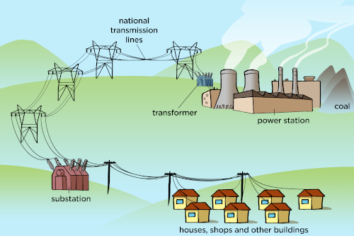 The high voltages are then coverted to 240 V for consumption in homes and offices.