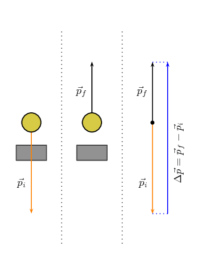 \[\Delta \vec{p}=m\vec{v}_{f}-m\vec{v}_{i}\]