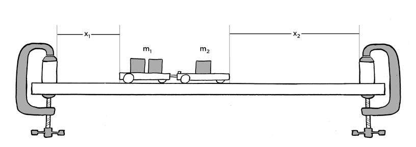 Find the mass of each trolley and place a known mass on one of the trolleys.