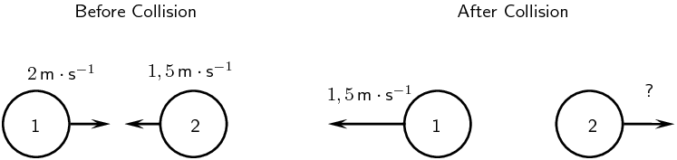 So after the collision, ball 2 moves with a velocity of \(\text{2}\) \(\text{m·s$^{-1}$}\) to the