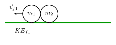 \({m}_{1}\vec{v}_{i1}+{m}_{2}\vec{v}_{i2}={m}_{1}\vec{v}_{f1}+{m}_{2}\vec{v}_{f2}=\left({m}_{1}+{m}_{2}\right)\vec{v}_{f}\)