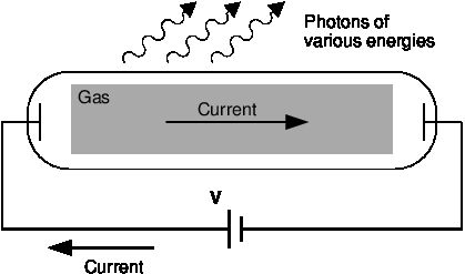 Figure 12.5: Diagram of a discharge tube. The tube is filled with a gas. When a high