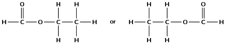 Give the structural formula of ethyl methanoate (\(\text{HCOOCH}_{2}\text{CH}_{3}\)).