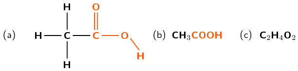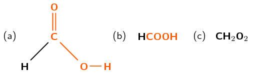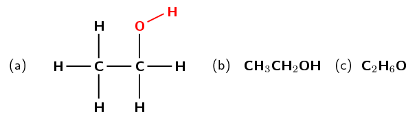 It is also possible to represent a molecule without showing any bonds between atoms at all. This is called a condensed structural formula (Figure 4.8). As for a semi-structural representation, the carbon atoms are grouped with the hydrogen atoms bonded directly to it. The bonds between these groups are not shown. Branched or substituent groups are shown in brackets after the carbon atom to which they are bonded.