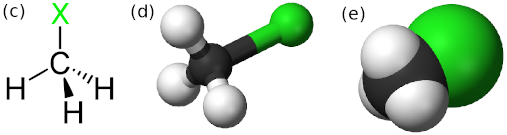 Figure 4.6: Different ways of representing a carbon atom bonding to four hydrogen atoms.