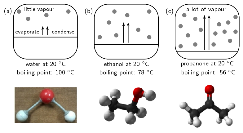 Figure 4.52: Submicroscopic diagrams of the three phases of water. Photos by