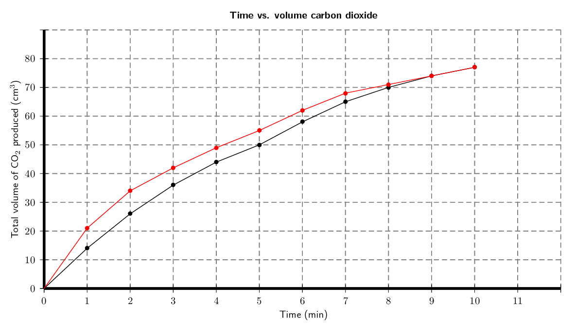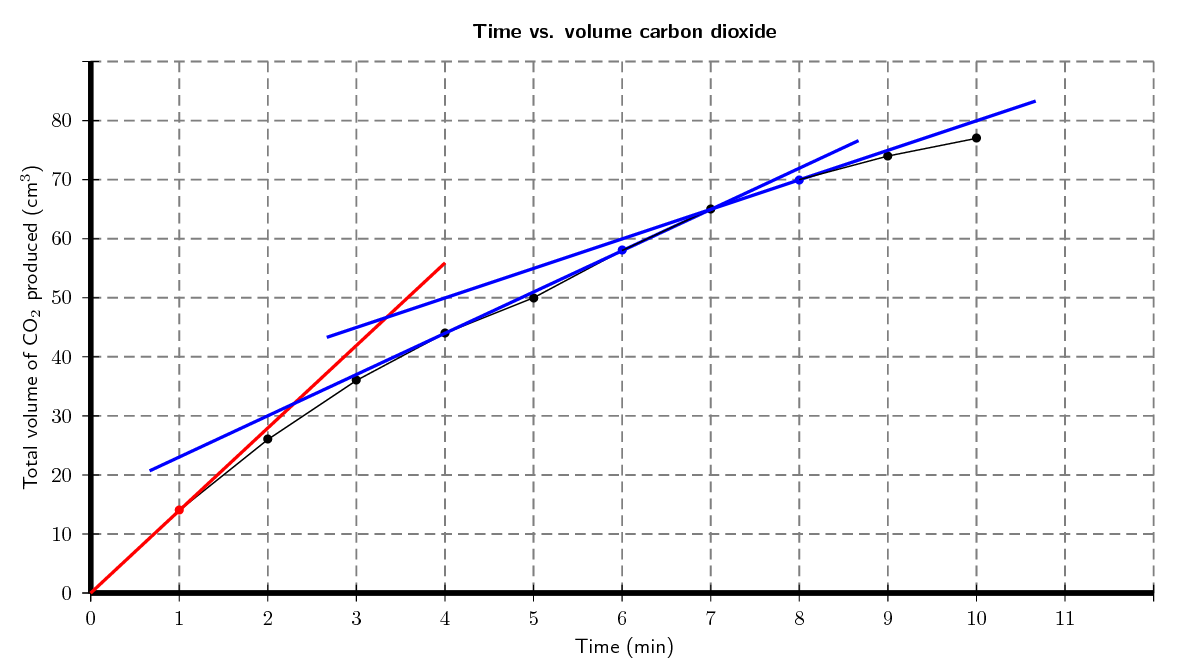 reaction is measured at different times. The results are