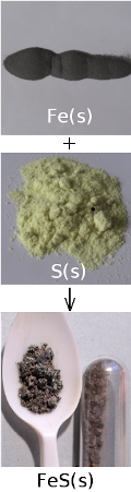 example, iron and sulfur react according to the following equation: