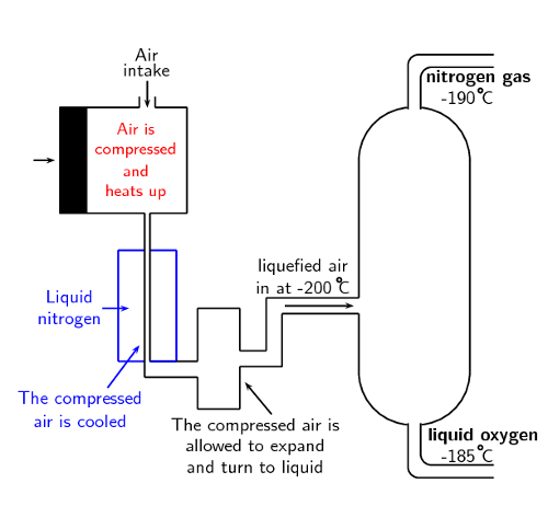 (compressed and cooled to \(-\text{200}\)\(\text{°C}\)) is pumped into the
