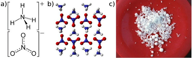 ammonium nitrate, \(\text{NH}_{4}\text{NO}_{3}\)