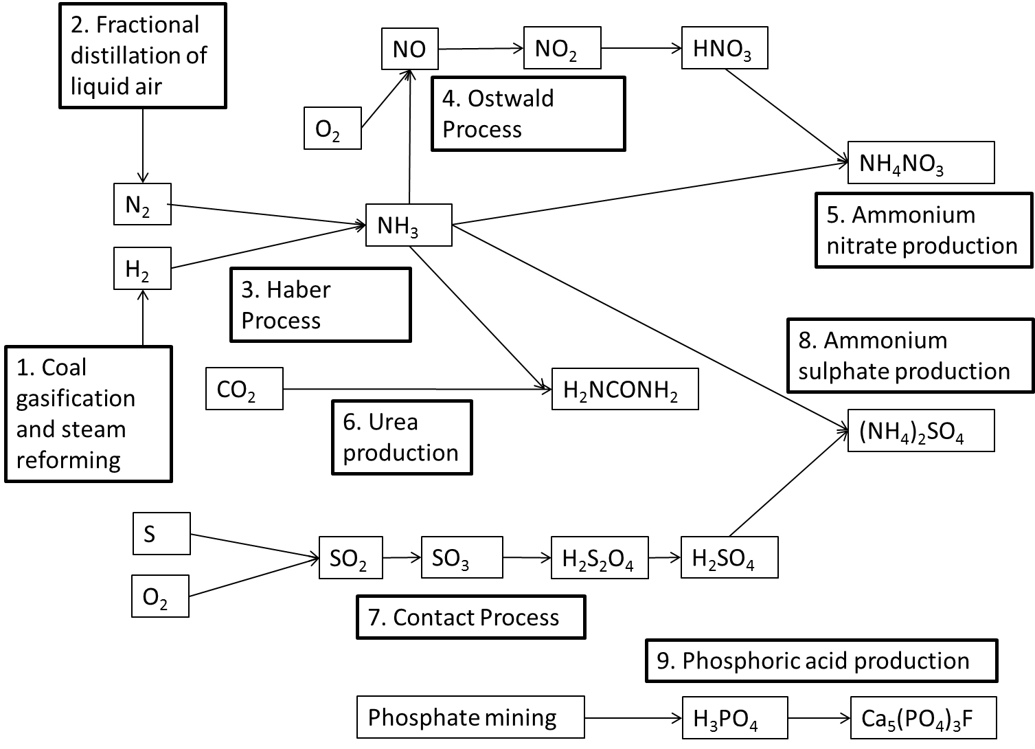 The industrial production of fertilisers involves several processes. Figure 14.3