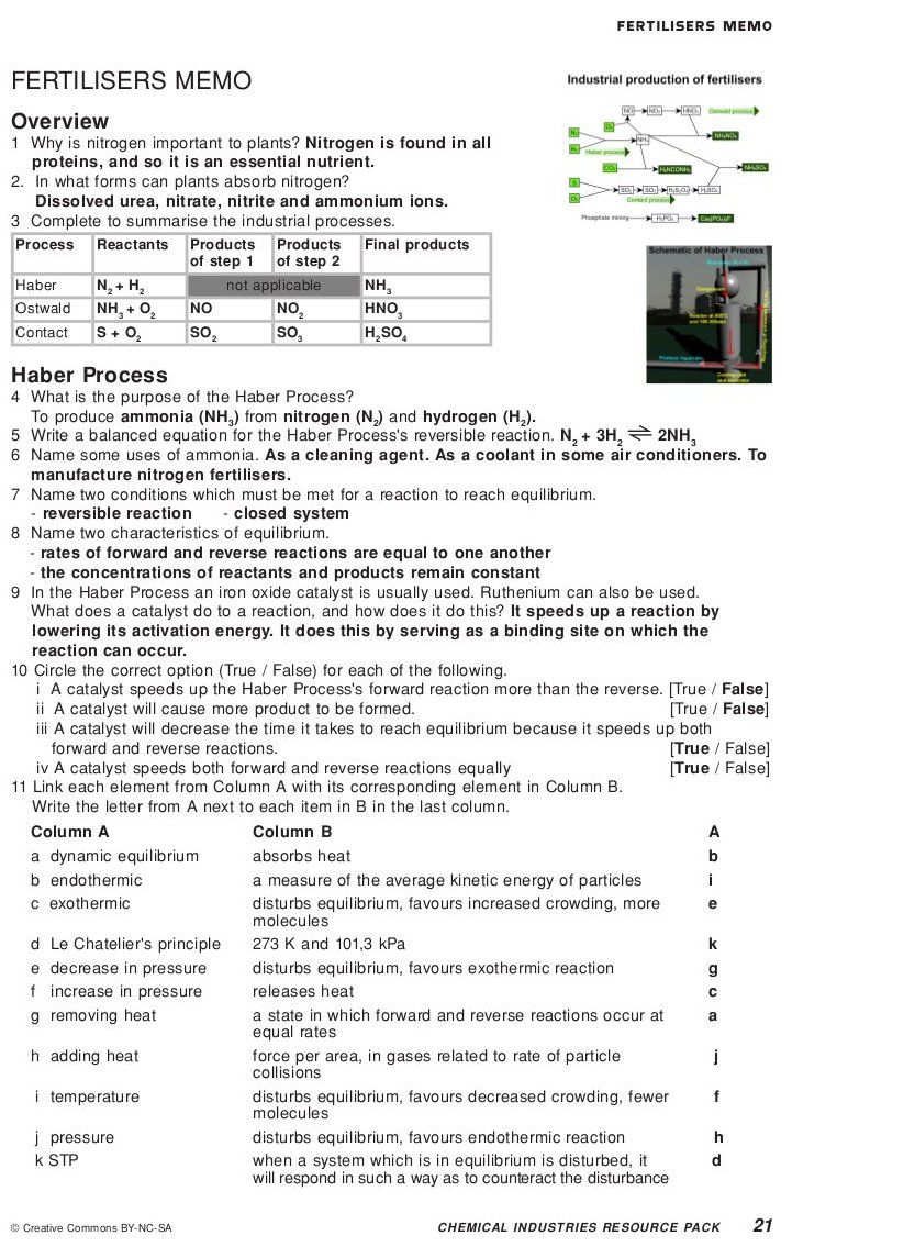 fertilisers. The industrial process used to produce ammonia is called the Haber