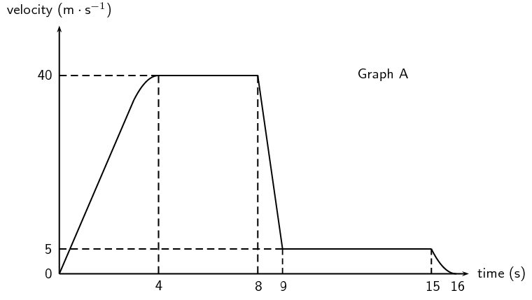 \(\text{8}\) seconds before opening her parachute. A graph of her velocity is shown in Graph A