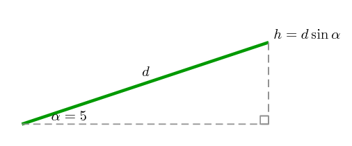 The slope, of length \(d\) is the hypotenuse of an imaginary